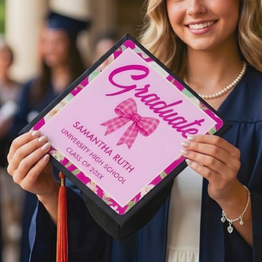 Wildflower Hot Pink Gingham Bow Graduation PartyDesignad av persisruth shiny