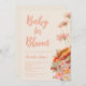 Barn i blom vackra vildblomme könsneutralt bebisfest kort. Boho höstblommor i orange, brun, persika och beige nyanser. Modern elegant typsnitt med lättanvända mallar för en unik bohemisk chic bebisfest inbjudan för att fira en mycket speciell blivande mamma. Originalkonst av konstnären Catherine Sweetman
