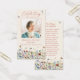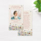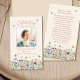 Detta är ett fantasifullt minneskort för böner. Designen har en vacker kalligrafiskrift och vackra vilda blommor i pastellfärger rosa, lila, blå, gula och roströda eller terrakotta och även ömtåliga fladdrande fjärilar. Detta begravningskort för böner kan enkelt anpassas med ditt eget foto för att skapa en speciell hyllning till din älskade med hjälp av den medföljande mallen.