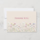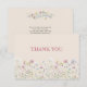Detta vackra vildblommtema babyshower platta tackkort kommer att sätta den perfekta tonen för parets babyshower. Designad med mjuk rosa klassisk bokstavsgestaltning omgiven av en vacker detaljerad bukett av boho-vildblommor i rosa, blå, gula och gröna nyanser. Låt denna vackert skapade design vara det perfekta sättet att tacka dina gäster. Anpassa det med din information.