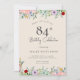 Födelsedagsinbjudningar för vuxna | Rustika Beige blommotiverade Eleganta 84-års inbjudan