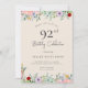 Födelsedagsinbjudningar för vuxna | Rustik beige blomstergrej Elegant 92:a inbjudan