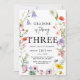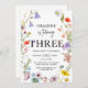Vildblomma tema flicka 3-års födelsedagsinbjudan inbjudningar