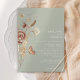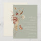 Enkelt. Modernt. Elegant. Salvia grön framsida med elfenbensvit text & elfenbensvit baksida. Denna BOHO minimalistiska bröllopsinbjudan skapades från handmålad akvarellbild av internationellt licensierad konstnär och designer, Audrey Jeanne Roberts. Dämpade torkade vildblommor samlas i en lös bukett med en delikat fjäril och Gingko blad grönska. Upphovsrätt.