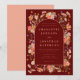 Denna eleganta romantiska boho-vildblomsvalv i bränd orange terrakotta bröllopsinbjudan fångar essensen av en höstfirande med sin fantastiska boho-chica design. Handmålade akvarellvildblommor ramar in ett valv varsamt och skapar en harmonisk blandning av höstliga nyanser bränd orange, bränd umber, lila, gul, terrakotta, persika, burgunder, korall och jordiga gröna toner. Den rika färgpaletten är satt mot en djup burgunderbakgrund och skapar en inbjudande och varm atmosfär perfekt för ett höstbröllop. De fantasifulla blommorna, inklusive nyanser av orange, bränd umber, bränd orange, korall, lila, rosa och gul, tillför en touch av naturens charm, medan den eleganta skrivstilen och den moderna typografin genomsyrar designen med sofistikation.