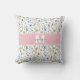Personlig Elegant Vildblomsmonogram Kastkudde. Lägg till en mjuk, stilren touch till ditt rum med denna eleganta kastkudde med ett delikat vildbloms-mönster i pastellfärger rosa, lila, blå, gul och grön på en ren vit bakgrund. Designen är tryckt på både fram- och baksidan för en polerad, sammanhängande look. En rosa stapel löper tvärs över designen med ett vitt och grått monogram i mitten, vilket skapar en graciös och personlig accent.
