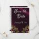 Denna design har en rustik elegans med ett enkelt tema. Vilda blombuketter i vackra varma sommarfärger på en lila bakgrund med platshållare för datumet. Baksidan har plats för ett foto av paret omgivet av lila band på en gammel träläkt bakgrund. Designad för att samordna med Rustic Wildflowers & Ribbon Collection. För att ändra detaljer, klicka på « Anpassa ». För att flytta texten eller ändra textstorlek, teckensnitt eller färg klickar du på « Klicka för att anpassa ytterligare »