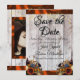 Denna design har en rustik elegans med ett enkelt tema. Vilda blombuketter i vackra höstfärger och gnistrande ljus med kopparband på en gammelträdgårdsbakgrund med platshållare för informationen. Det finns plats för ett foto av paret på baksidan av kortet. Designad för att samordna med Rustic Wildflowers & Ribbon Collection. För att ändra detaljer, klicka på "Personanpassa". För att flytta texten eller ändra textstorlek, typsnitt eller färg, klicka på "Klicka för att anpassa ytterligare"