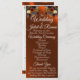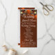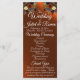 Framsidan har vildblomsbuketter i vackra höstfärger på en kopparbakgrund med detaljer om vigselceremoniens program och ett speciellt tack. Bröllopsfestens detaljer finns på en träbakgrund på baksidan. Dessa program är bra för landsbygd eller utomhusbröllop. Genom att ändra teckensnitt kan du skapa en mer elegant eller rustik look. Designad för att samordna med Rustic Wildflowers & Ribbon Collection. För att ändra detaljer, klicka på «Personalize». För att flytta texten eller ändra textstorlek, teckensnitt eller färg klickar du på «Click to customize further»