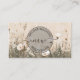 Detta vackra visitkort har vita vildblommor på en beige bakgrund. Framsidan visar en logotypcirkel med namn och yrke, medan baksidan har plats för en QR-kod och kontaktuppgifter, vilket gör det både vackert och funktionellt. Perfekt för yrken som: Massageterapeut – Livskonsult – Wellnesscoach – Trädgårdsanläggare – Doula eller förlossningscoach – Energiteraput – Meditationslärare – Estetiker eller hudvårdsspecialist – Yogainstruktör - Fastighetsmäklare - Trädgårdsmästare