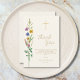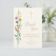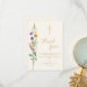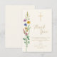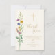 Detta dop-kort med tack så mycket, har vildblommor och ett kors på en mjuk krämfärgad bakgrund.