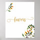 Vildblomsfavoriter skylt har modern falsk guld kalligrafi, akvarell blommor och en vit bakgrund. Denna skylt finns också tillgänglig med texten i svart. Se kollektionen för koordinerande produkter.