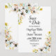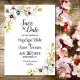 Denna vårblommiga brölloppskort med förhandsanmälan fångar essensen av våren med sin livfulla blommiga design. Kombinationen av pastella nyanser, blommande kronblad och gyllene blad skapar en charmig och romantisk stämning. Detta kort är perfekt för par som planerar ett vackert vårbröllop och är det perfekta sättet att tillkännage er kommande vigsel med stil.