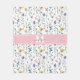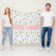Personlig elegant vildblomsmonogramfilt. Lägg till en mjuk och mysig touch i ditt hem med denna eleganta filt med ett delikat vildblommuster i pastellfärger i rosa, lila, blå, gul och grön på en ren vit bakgrund. Designen är tryckt på ena sidan och inkluderar en rosa stapel tvärs över mitten med ett vitt och grått monogram för en graciös, personlig accent.