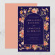 Elegant vildblomsvalv i marinblått, bränt orange, terrakotta och persika höstbröllopsinbjudan. Denna förtrollande boho-chica blommiga bröllopsinbjudan är en fantastisk blandning av höstlig värme och elegant charm. Med handmålade, akvarell vildblommor runt en elegant valvdesign visar inbjudan en rik färgpalett av bränt orange, bränd umbra, korall, orange, brun, gul, grön, terrakotta, korall, lila och rosa. De varma jordnära tonerna skapar en perfekt harmoni, vilket gör den till ett idealiskt val för ett höstbröllop. Den eleganta skrivstilen och den moderna typografin ger en touch av sofistikering, medan de lekfulla vildblomsakvarellerna runt valvets fönster lägger till en personlig, bohemisk touch till alla dina viktiga bröllopsdetaljer. Designad av den begåvade konstnären Catherine Sweetman, förkroppsligar denna unika inbjudan andan av en mysig, intim firande i höstens hjärta. Med lätt-anpassningsbara mallar erbjuder