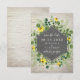 vilda blommor och grönska med text över svart geometrisk design i mitten. Bakgrunden är vit tegel.