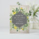 vilda blommor och grönska med text över svart geometrisk design i mitten. Bakgrunden är vit tegel.
