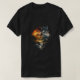 En hisnande dramatisk dubbelexponeringsillustration som smälter samman en majestätisk grå vargporträtt med ett svepande vildmarkslandskap av brinnande berg, tallskogar, en kaskadvattenfall, månuppgång och silhuetter av vilda djur inklusive en hjort, björn och en flygande örn.