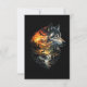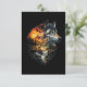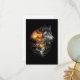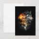 En hisnande dramatisk dubbelexponeringsillustration som smälter samman en majestätisk gråvargsporträtt med ett svepande vildmarkslandskap av brinnande berg, tallskogar, en kaskadvattenfall, månuppgång och silhuetter av vilda djur inklusive en hjort, björn och en flygande örn.