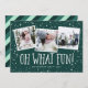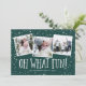 Festive helgdag-fotokort innehåller tre fyrkantiga foton i en kollagelayout, med "oh What roligt" i vita vita bokstäver på en jägare-gröntens bakgrund. Anpassa med namn och året längs grund.