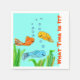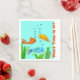 Lustigt pappra blöjor för designer med simmande fisk i orange, blått och gult. Anpassa texten till kostym vid ditt särskilda tillfälle. Den ljusblå bakgrunden färg kan ändras till färg som är din favoritpastel för att koordinera färgerna för händelsen. Utformning av roligten för stuga eller fiskeort.