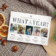 Unik modern helgdag-kortdesign har fem favoritfoton med bildtexter för anpassningsbar, med din familj namn och "vad ett år!" ovan. Skapa ett stil-kort för familj och vänner som ska granskas varje år genom att dela foton av familjens speciella stunder och beskriva dem med våra textmallar för anpassningsbar. Tunga och grått-bokstäver med handskrivna skriptaccenter ger detta helgdag ett modernt minimalistiskt intryck. Kort tillbaka till mönster i vitt snöflingor på rikens marinblått.