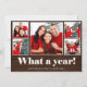 Det här enkla och roliga julkortet med flera foton säger "What a year!" med modern vit typografi på en rustik, brun träbakgrund med ett rutnät med fem foton på framsidan av kortet. Baksidan innehåller ytterligare två foton, plus en plats för att lägga till ett eget personligt meddelande. Ett sött och stilrent sätt att fira att man klarat sig till slutet av ett mycket svårt år! Perfekt för både jul och nyår.
