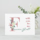 Personlig "vill du vara min blomsterflicka?" -kort med vacker blommig bokstavsdesign. Detta eleganta brudtärna-förslags kort är skrivet i nyanser av dammig rosapink, jägaregrön och elfenben. Det har ett rosa glitter-"F", prytt med en rosa och elfenbensfärgad bukett av blommor och bladverk. Texten på framsidan lyder "vill. du. vara. min. hedersbrud?" i klassisk typografi med en modern twist. Baksidan är rosa med handskriven textstil och mallen är inställd för att du ska kunna anpassa (eller ta bort) meddelandet, som du önskar. Vänligen bläddra i vår butik efter koordinerade artiklar.