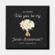 Överraska dina bästa vänner med ett hjärtligt och elegant förslag till junior brudtärna med hjälp av denna charmiga blomsterdekorerade magnet! Prydd med ömtåliga vintageblommor och graciös kalligrafi är denna magnet det perfekta sättet att fråga, **"Vill du vara min junior brudtärna?"** på ett meningsfullt och tidlöst sätt. Designad med en romantisk, vintageinspirerad estetik, kombinerar den mjuk, feminin charm med klassisk elegans, vilket gör den till en idealisk souvenir för alla bröllopsteman - oavsett om det är rustikt, sagolikt, shabby chic eller glamouröst. Med en hjärtlig hälsning är denna vackra och sentimentala magnet en perfekt tillägg till brudtärnornas förslagslådor, brudshower eller som en speciell token för upps