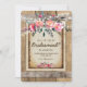 Vintage chic vingård brudtjänstkort med en rustik ekfat trähylla, fluffig rosa blomsterarrangemang, strömljus, juteväv och en modern mall för att fråga om du vill vara brudtjänst.
