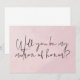 Rosa akvarell "Vill du vara min brudtjänst" vykort.