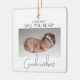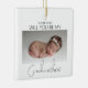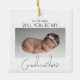 Fråga din bästa vän, syster eller kusin att vara din babys fadder med denna vackra minimalistiska 2-sidiga foto julgran ornament, Med en söt bild på din baby, som ställer frågan och på andra sidan en annan bild med ett mallmeddelande, teckensnittsstilar och bakgrundsfärg kan ändras genom att klicka på länken anpassa ytterligare efter att ha anpassat.