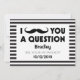 Om du funderar på att be någon bli din pageboy på ditt framtida bröllop, varför inte välja dessa coola svart & vit-mustasch-sidogosse-kort. Denna anpassade inbjudan kommer att få din vän, bror, kusin, systerson, son eller vem du än väljer att känna sig extra speciell. Denna inbjudan är lätt att anpassa genom att klicka på knappen "Anpassa" under bilden där du kan ändra text, teckensnitt och storlek.
