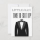 Lille man Tid att klä upp sig med smoking på framsidan. Personlig med ringbärarens namn, meddelande, brudgummens namn och ett datum som ges eller bröllopsdatum.