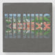 Vilnius text som består av synpunkter från högre ort än Vilnius gamla stad, Litauen. Vy över St. Stanislaus-katedralen på katedraltorget, Gediminas-slott på backe, rödhakor