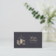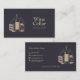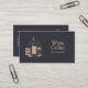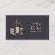 Ett affärskort i svartvitt och guld färg med en illustration av ett flaska i vin framför en träpropp i låda och med en kork propp, ett glas i vin och en druva. Den skulle kunna användas för en källarbutik i vin, en vinproducent, en sommar osv.