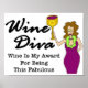 Vin Diva kan verka förstörd och krävande, men sanningen är att hon är mycket medveten om sin egen fantasi. Och hur ska hon kunna fira hur fantastisk hon är än med ett glas bra vin? Design av Victoria Lynn Hall.