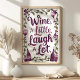 Den här charmerande väggkonsten innehåller det lekande och relaterade citatet "Vin a Little, Laugh a Lot", som på ett vackert sätt illustreras med vin-glasögon och flaskor i rikens burguner. Utformningen accentueras med delikat grapevine-löv, vilket ger en aning elegans och värme. Perfekt för kök, matsalar eller annat utrymme där bran är delad är detta biet en trevlig påminnelse om att njuta av livets enkla njutning med vänner och familj.