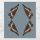 Fotografi av en mörk orange, brun och svart fjäril på en grått blå bakgrund gör denna unika vin-märkning.
