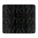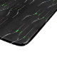 En silhuett med tre svarta vin flaskor med grönt etiketter som glöder i mörken.