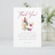 Ett modernt tackkort som matchar vår Vino Before Vows Wine Bridal Shower-kollektion. Designen visar en akvarellscen med rödvin, fransk champagne och rosé tillsammans med italienska brödstänger, vindruvor, en ostserveringsfat och ett personligt hjärtligt tackmeddelande för att uttrycka din tacksamhet mot vänner och familj. Perfekt för vinprovning och bröllopsfest på vingård. Baksidan av designen visar ett elegant mönster av charcuteriebräden, vinflaskor och champagneglas. Se den kompletta kollektionen på den här sidan för den matchande bröllopsuppsättningen. Skicka gärna ett meddelande om du har några frågor, jag hjälper dig gärna!