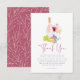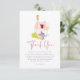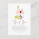 Ett sofistikerat tackkort som matchar vår Vino Before Vows Wine Tasting Bridal Shower-kollektion. Designen har en akvarellillustration av en roséflaska, champagneglas, röd vinglas, vitt vinglas, vindruvor, ost och ett vinblad, samt ett personligt hjärtligt tackmeddelande för att uttrycka din tacksamhet till vänner och familj. Baksidan av designen har ett elegant botaniskt mönster mot en rosa bakgrund. Se kollektionen som är länkad på denna sida för den matchande bröllopsduschuppsättningen. Skicka gärna ett meddelande till mig om du har några frågor, jag hjälper dig gärna!