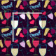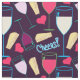 Party fick modern vin-glasögon, ost och hjärtan Fabric-design på mörkens burgundbakgrund. Perfekt, söt design för att skapa produkter för ett kommande firande.