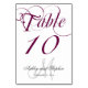 Anpassningsbar Monogram Bröllop-Bordsnummer-kort med Deep Lila Vin Finare-skriptteckensnitt. Design av Elke Clarke ©. Anpassa med dina personuppgifter, bröllop-datum och färg. Beställ en per bord med varje bordsnummer men ta ändå emot massrabatten för totalt beställt antal.