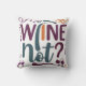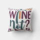 En modern och snyggt utformning med texten "Vin Not?" i ett fet, geometriskt typsnitt, med färgstarka former och linjer som är sammanflätade runt den, som representerar vin sofistikering och njutning.