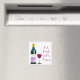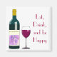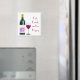Tekvorgsmagnet med grafik av ett glas vin flaska och vin med rött text, Eat, Drink och Lycklig. Den lilla presentidén, som inte gillar kylmagneter.