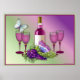 Jude tonade flaska i vin med två elegant vin-glas. Grönt och lila druvkluster som attraktivt visas i förgrunden.
