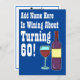 Vin ungefär 60 Födelsedagsfester roligt inbjudan. En underbar inbjudan till en vin älskare som vänder sig 60. Den har en tecknad vin flaska och ett glas. Det är perfekt för någon som vill "vin" om att bli sextio år gammal.