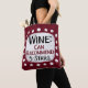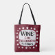 En lustig typografisk design som säger "Vin: Can Recommend, 5 Stars". Den är svart och brugröd text på en vit rektangel med funky, lekfulla vita prickar runt den, allt på en burgundär bakgrund.