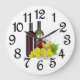 En vacker stor runda av Vin Flaskor, glas och druvor.